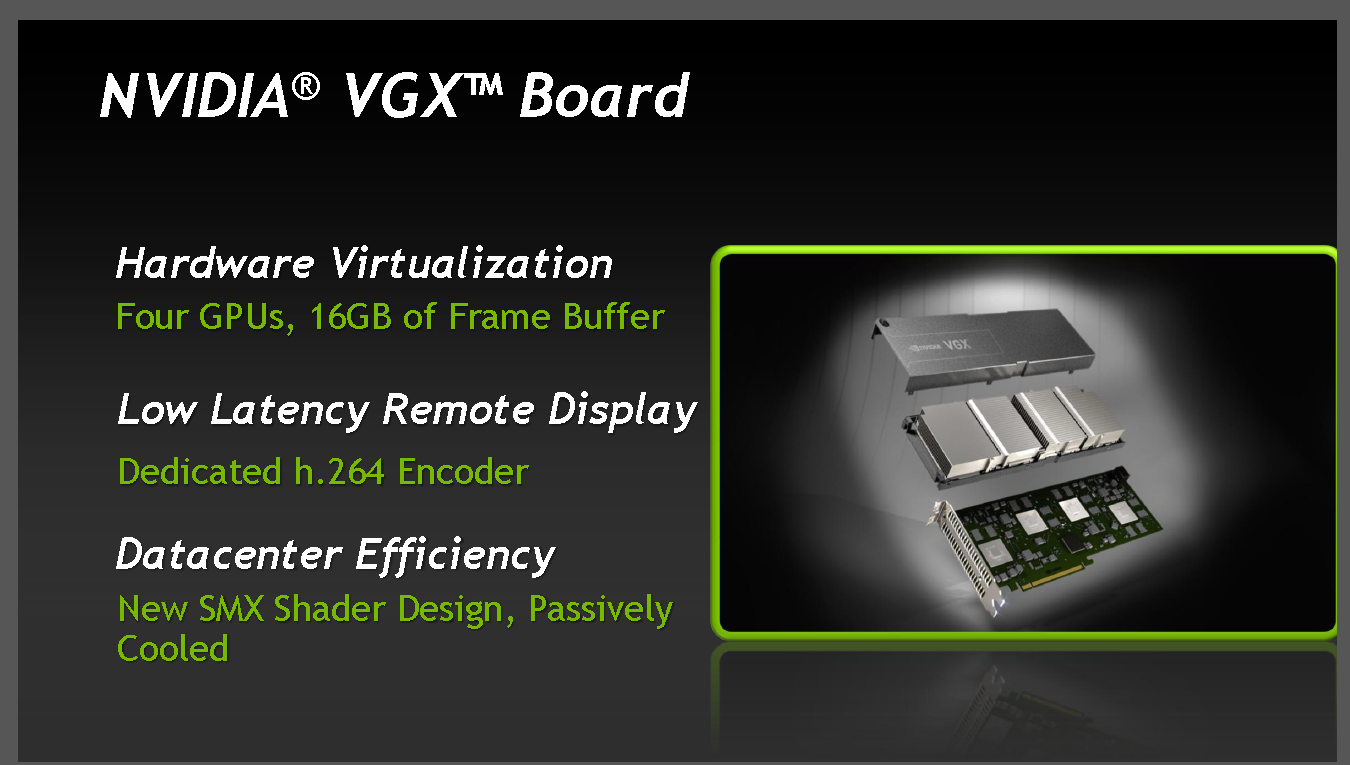Contrary to some comments above – VGX is a real game changer for MANY industries – my only hope is that NVidia don’t strangle the market by A) Vastly overcharging for a card that is essentially a £200 consumer GPU B) Restrict competition by tieing virtualisation vendors into a proprietary API to interface with the GPU, thus locking AMD out of the market which is to the longer term detriment of end users (e.g. CUDA vs OpenCL).”